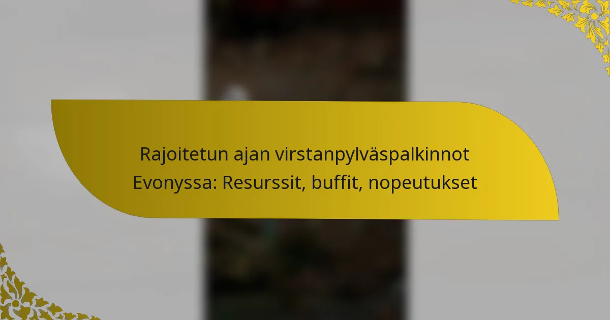 Rajoitetun ajan virstanpylväspalkinnot Evonyssa tarjoavat pelaajille mahdollisuuden ansaita arvokkaita palkintoja suorittamalla tiettyjä tavoitteita määräajassa. Nämä palkinnot sisältävät usein olennaisia resursseja, buffeja ja nopeutuksia, jotka parantavat merkittävästi pelin kulkua ja edistymistä. Näiden palkintojen maksimoimiseksi pelaajien on osallistuttava strategiseen pelaamiseen ja tehokkaaseen resurssienhallintaan vuoden aikana järjestettävien tapahtumien aikana.